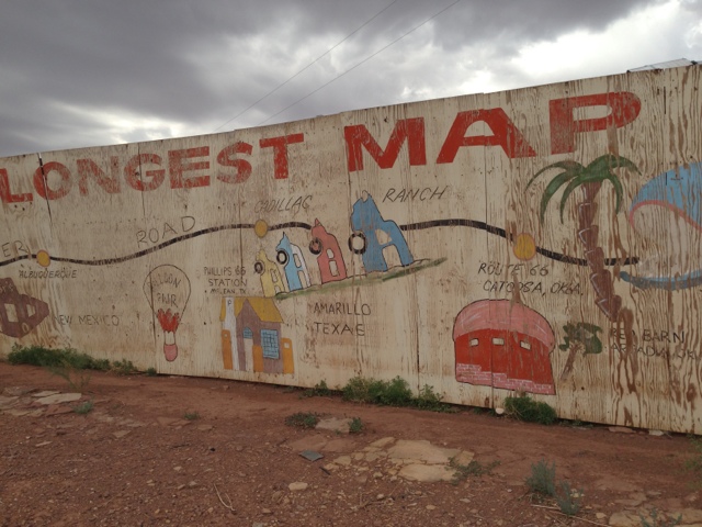 We found ourselves at a deserted road side attraction in the middle of no where which claimed to be home to the worlds largest map of Route 66. The map was slightly delapitated, but it was neat to see none the less.